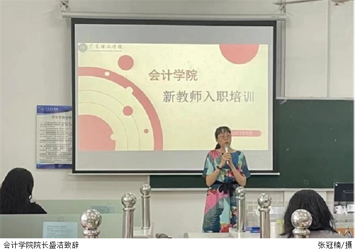 盛洁致欢迎辞,并介绍了学校和太阳成集团tyc7111的发展史以及近期学院工作重点和规划,提出“端正态度、努力同频,加强学习、提高素养,谦虚谨慎、得体大方”的殷切期望。他鼓励新教师以高度的责任心尽快熟悉各项工作,以饱满的热情不断提升教科研素养,以扎实的工作为社会、为企业精准培养更多高质量的会计人才。