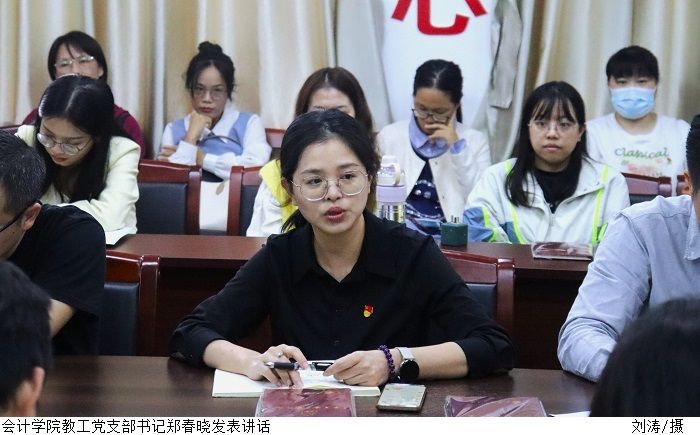 随后,郑春晓表示,身为党员教师,我们应以习近平总书记视察广东重要讲话精神为指引,立足本职岗位,自觉强化责任意识,扎实创新进取,推进学院的教育工作高质量发展,培养一批高素质应用型学生。