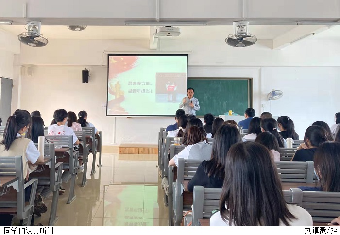 黎伯毅强调同学们要把学习作为首要任务,争取获得优秀成绩,同时认真学习党的基本理论知识,拓展自己的知识面,不断提高学习能力。黎伯毅表示疫情影响下,学校防疫工作有条不紊,同学们应主动配合,向服务在前线的优秀团员、党员看齐,以实际行动积极向党组织靠拢。最后,结合自身工作实际,鼓励同学们发扬“不怕苦、不怕累”的精神,积极参加志愿服务,凝聚青春力量,展现青年担当。