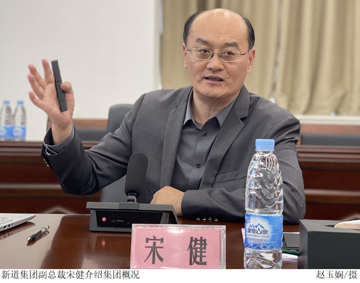 新道集团副总裁宋健介绍了新道集团的使命与愿景、企业文化、产品体系等概况。他回顾了近10年来,新道集团在院校教育等三大领域内培养数智化人才的探索历程。他指出,新道科技的使命之一,就是把数智商业搬进校园,从而成为院校的好智囊、老师的好伙伴、学生的好帮手。他希望依托新道集团雄厚的教育资源,能更好地服务于我校的财经类专业建设,培养更多的优质数智化人才,开发更多的优质课程,让更多的学子真正受益,为他们搭建通往未来职场的阶梯和舞台。