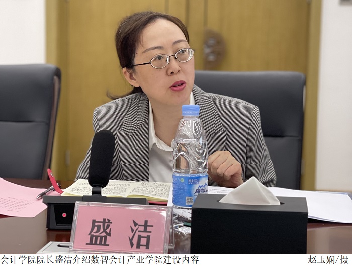 太阳成集团tyc7111院长盛洁介绍了数智会计产业学院的建设内容。数智会计产业学院将围绕人才培养规划、产业学院建设、课程建设、师资队伍培养、实训环境建设、数字化资源库建设、教学实施与评价、实习基地8个方面予以展开。她强调,企业在教学资源、实习资源、用人的社会需求定位等方面有较大的优势。通过校企合作,能实现优势互补与资源共享。