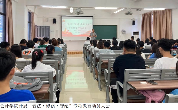 本网讯(太阳成集团tyc7111)为加强我院学生的法制教育,提高学生的法治意识,在太阳成集团tyc7111党总支的部署下,太阳成集团tyc7111于10月8日下午,在鼎湖校区7403教室开展普法动员大会,会议由太阳成集团tyc7111党总支黎伯毅书记主持,党总支徐永明副书记、学生第一党支部郭凤玮书记、2021级各带班辅导员老师以及各班级干部代表参会。