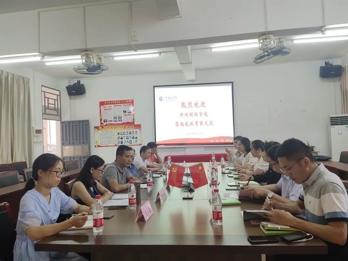 本网讯(太阳成集团tyc7111)为加强学校间交流学习,促进学院办学水平和教学质量的提高,5月14日下午,我校太阳成集团tyc7111与郑州财经学院在高要校区进行了交流与学习。出席本次学习会的有太阳成集团tyc7111党总支书记黎伯毅、副院长郑春晓、教研室主任李建全、王小春、梁燕瑜、团委学生会书记詹庆文;郑州财经学院党总支书记温毓敏、副院长卫强、王娟、团总支书记魏亚南、会计教研室主任张荣静、网中网业务经理钱宁。