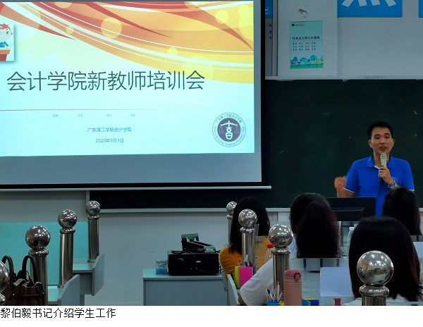 盛洁院长深情回顾了学校的发展历史与20年的本校工作经历,勉励新老师不断克服困难,勇做教书育人的践行者与教学改革的探索者。黎伯毅书记描绘了学生工作点滴,期望新老师树立以德树人的理念,积极引导学生树立社会主义核心价值观和正确的人生观。赵燕副院长解析了会计学与财务管理专业建设与人才培养方案,提出了提高教学与科研水平等利于新老师成长的诸多建议。郑春晓副院长分享了教学心得,从教学目标、教学方法等方面细致阐述了新老师应当如何上好第一节课。培训共持续3个小时。各位新老师纷纷在微信群里表示,经过此次培训,获益匪浅。