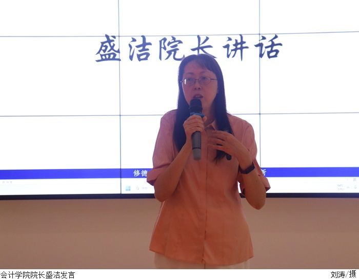 接着,盛洁院长就基层教学组织建设的背景、基层教学组织的定义及功能展开详细讲解,并结合部分高校及我校的基层教学组织实例,分析了基层教学组织的形式,指出了在促进教学质量和人才培养质量的提升方面,需要对现有的教学组织进行调整与创新。同时,她表示,基层教学组织的启动建设,有利于帮助青年教师了解学院的管理工作和教科研工作,对不断提高教师的业务能力,起着非常重要的作用。