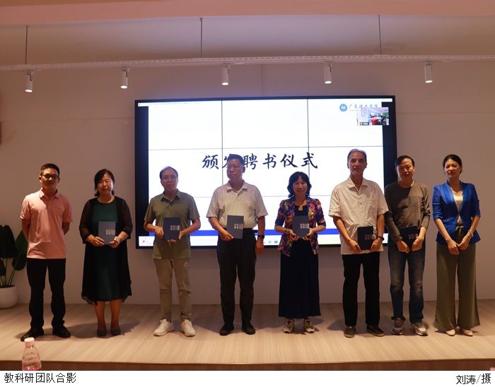 随后,郑春晓副院长宣读了教科研团队和课程建设团队负责人名单。在全体教师的热烈掌声中,唐建宁和陈木荣分别为教科研团队颁发聘书,盛洁和黎伯毅分别为24名课程建设团队负责人颁发聘书。
