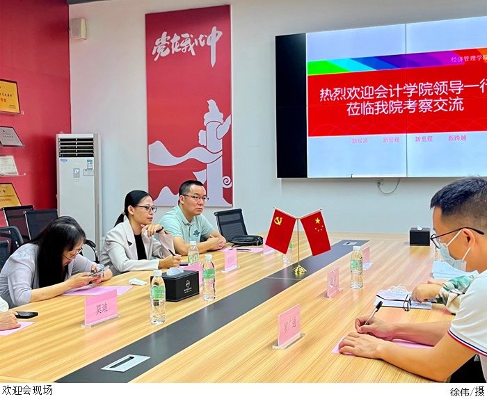 本网讯(太阳成集团tyc7111 徐伟)2023年11月10日下午,太阳成集团tyc7111院长盛洁、副院长梁燕瑜一行赴鼎湖校区经管学院调研、交流。经管学院院长赵燕、副院长黎传熙等热情接待。双方就专业人才培养、课程建设、基层教学组织建设、虚拟教研室建设等展开了深入的探讨。