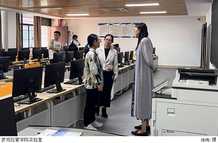 交流完毕,盛洁、梁燕瑜等实地参观了经管学院的金融科技等领域的专业实验室。