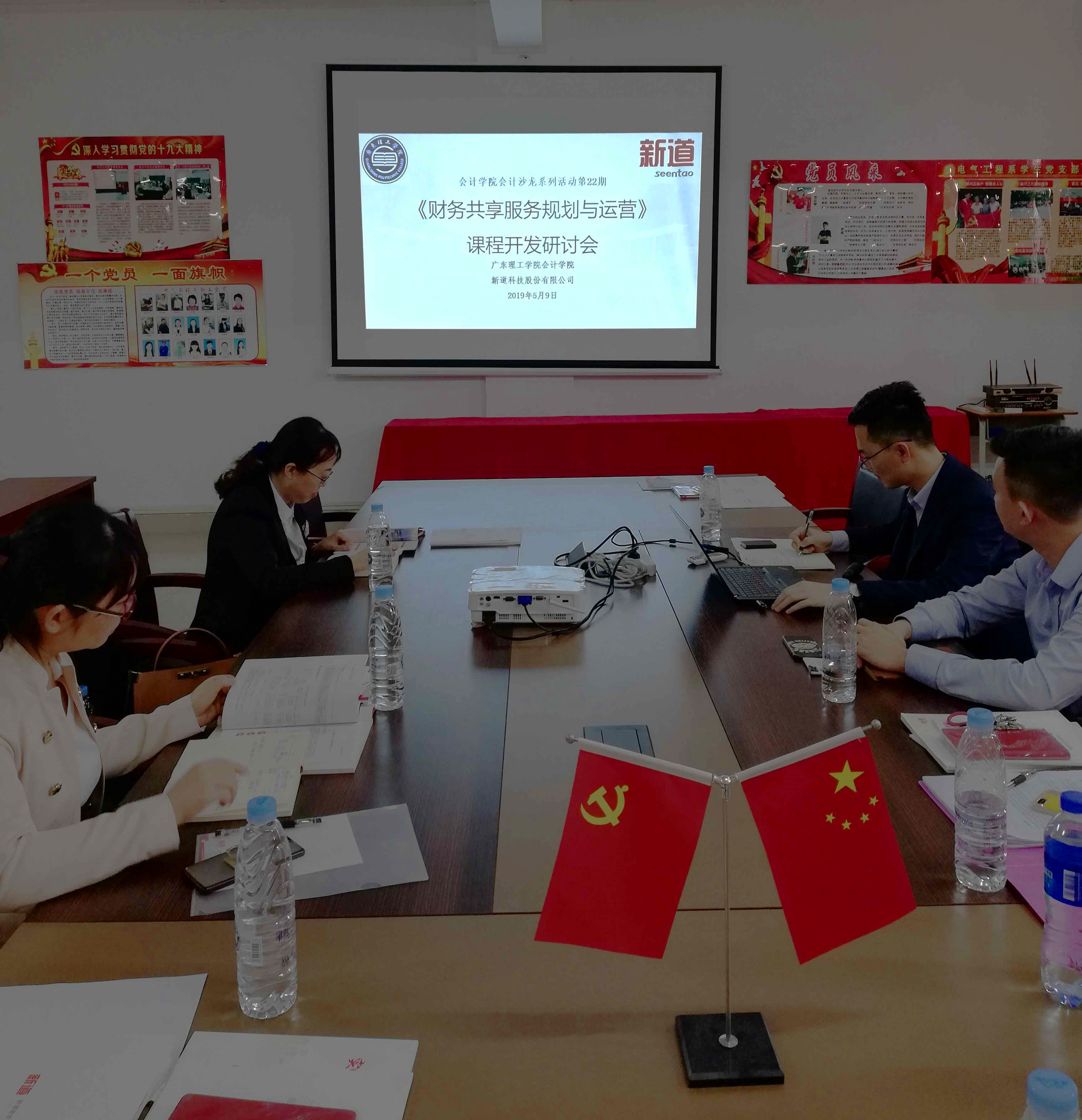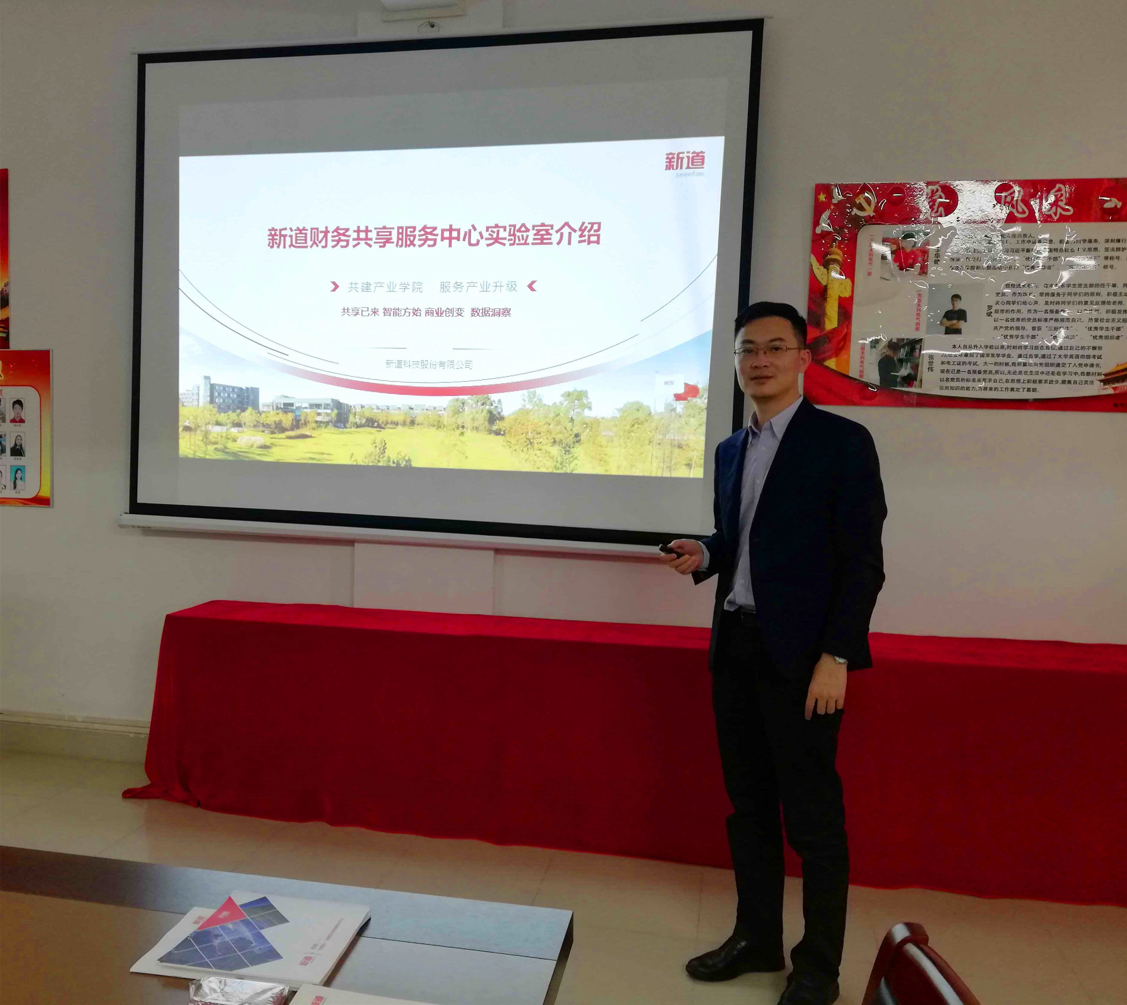 会上,翁义春副总做了《财务共享服务规划与运营》课程开发报告并详细介绍了新道财务共享服务中心实验室建设情况。报告结束后,双方就财务共享课程开发相关事宜做了进一步深入的沟通与探讨。