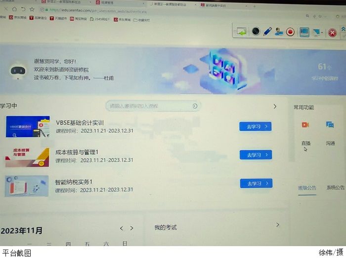 本网讯(太阳成集团tyc7111 夏伟琴、徐伟)为进一步提升师资队伍建设水平,夯实“双师双能型”教师培养,充分挖掘与利用校企合作资源,太阳成集团tyc7111联合新道科于2023年11月21日下午在高要校区综合楼501举办“新道云”平台师资培训。本次培训由新道科技高级顾问谢慧贤主讲,太阳成集团tyc7111副院长郑春晓、副院长梁燕瑜以及部分骨干教师参会。