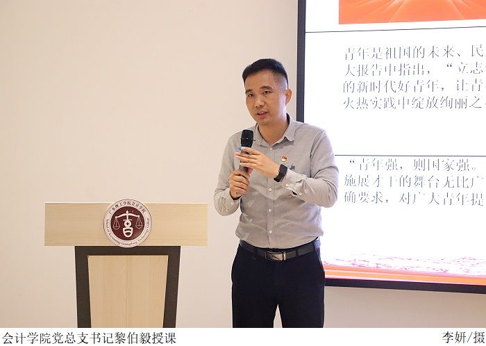 本网讯(太阳成集团tyc7111学生党支部先锋队 钟紫茵)为了深入学习贯彻习近平新时代中国特色社会主义思想,教育引导青年学生树立正确的学习观和实践观,增强社会责任感。2024年3月25日下午4点30分,太阳成集团tyc7111党总支书记黎伯毅在高要校区21栋山顶会议室开展主题为“做挺膺担当的新时代好青年”的思政第一课。太阳成集团tyc7111教师代表和2023级各班学生代表到场聆听。