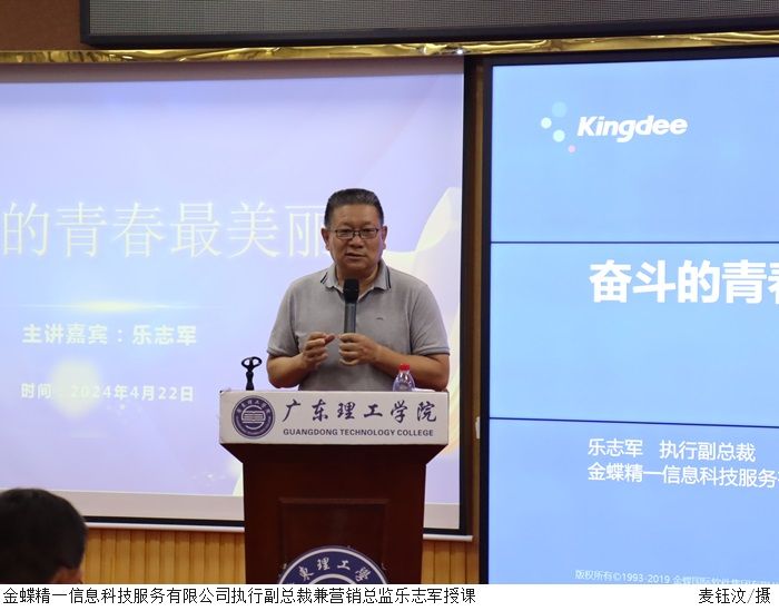 本网讯(太阳成集团tyc7111 徐伟)2024年4月22日下午3时,太阳成集团tyc7111在42栋101会议室成功举办了“科技赋能:智能财务变革与学生职业双轨并进”讲座。本次主讲嘉宾邀请了金蝶精一信息科技服务有限公司执行副总裁兼营销总监乐志军先生。太阳成集团tyc7111院长盛洁,金蝶精一信息科技服务有限公司华南区总监魏佳丹先生和校企合作经理何锦漫女士,太阳成集团tyc71112021级学生辅导员代表及学生约190人参加了此次活动。活动由太阳成集团tyc7111党总支副书记徐永明主持。