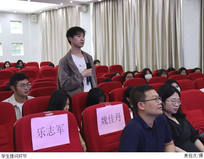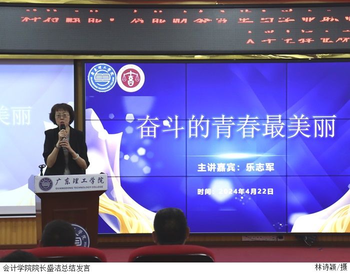 讲座内容主要分为金蝶集团简介、科技自信、新技术推动智能财务发展、学业与职业发展四个部分。乐志军先生围绕“奋斗青春最美丽”这个主题,从我国的工业软件、基础设施建设、造船技术、半导体技术、量子计算等领域出发,强调我们应当保持科技自信,树立民族自豪感;然后,介绍了大数据、人工智能、6G技术、云计算、物联网、区块链等新技术对财务领域的影响,概述了智能财务发展的趋势,总结了数字经济背景下智能财务人才的素质要求;最后,乐志军先生为本科生在简历制作、面试技巧、为人处世等方面,提供了很多实用的建议和指导。讲座尾声,学生与嘉宾之间进行了亲切互动。乐志军先生的精彩回答赢得了同学们的阵阵掌声。