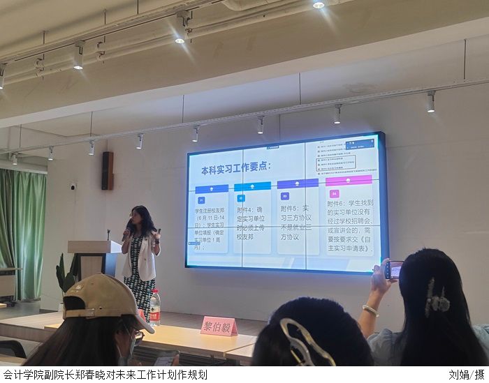 会议伊始,盛洁院长给予全面而深刻的回顾。她详细汇报太阳成集团tyc7111在过去学期内在教学、科研和社会服务等多个领域取得的显著成就。同时,她还指出学院在师资队伍建设和课程体系更新等方面尚存的不足,并针对这些问题提出了具体的改善措施。特别地,为了进一步提升本院教职工在撰写高质量论文方面的能力,盛院长特邀《会计之友》主编笑雪先生为全院教职工举办专题讲座,热切鼓励大家积极参与,以充分利用此次学习机会。此外,盛院长还对暑期教职工培训计划进行周密部署,期望各位教职员工能通过培训进一步提高个人专业水平。