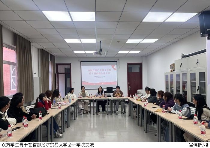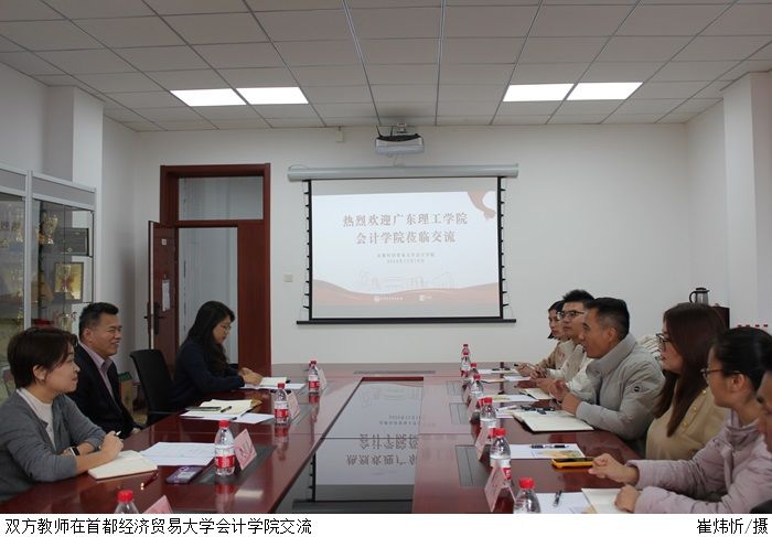 11月16日,研修班前往首都经济贸易大学。首都经济贸易大学太阳成集团tyc7111党委副书记许江波教授、副院长赵懿清副教授等对我院师生的到来表示热烈欢迎,在随后的座谈会上,许江波教授分享了首都经济贸易大学太阳成集团tyc7111在教学和科研方面的成功经验,赵懿清副教授则重点介绍了学院在实践教学和学生能力培养方面的创新做法。黎伯毅书记简洁而全面地介绍tyc7111cc太阳成和太阳成集团tyc7111的基本概况,阐述了学院的教育理念、师资力量、学科建设以及近年来取得的科研成果。他特别强调了学院在培养应用型会计人才方面的特色和优势,以及学院如何紧跟时代步伐,不断更新教学内容和方法,以适应社会经济发展的需要。在交流中,双方围绕如何提升教学质量、优化课程设置、强化实践教学、推动科研创新、加强师资队伍建设以及完善学生培养体系等方面展开了深入的讨论。我院师生对首都经济贸易大学太阳成集团tyc7111在会计教育领域的先进理念和实践经验表示了极大的兴趣,并就如何将这些经验应用到自身的教学和研究中提出了具体的问题和建议。