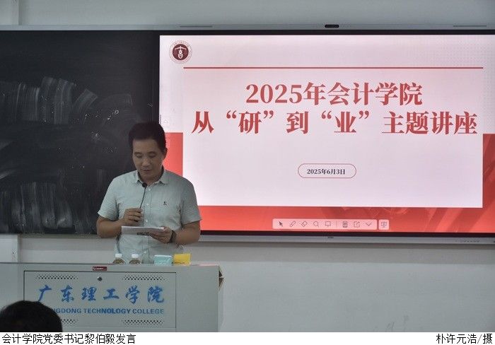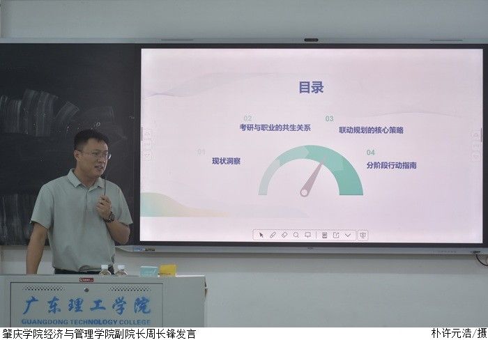 会议伊始,黎伯毅主持开场,他表示为帮助学生明晰考研方向、做好职业发展规划,特邀周长锋博士开展从“研”到“业”主题讲座。希望借助其在科研、学科建设等领域的丰富经验,为学生提供专业指导,助力学生在考研与就业竞争中抢夺先机。