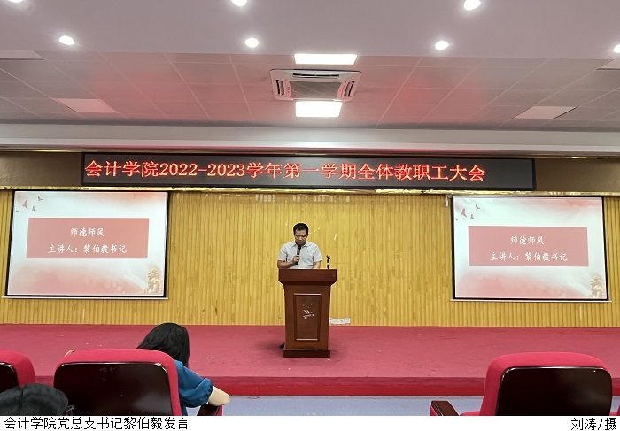 黎伯毅结合近期重要学习文件发表师德师风讲话。他提到,9月为师德师风教育月,各位老师要认真学习《新时代高校教师职业行为十项准则》、《深入学习习近平关于教育的重要论述》等五项文件的会议精神,既做好“经师”,又做好“人师”。结合评估进度,学院之后将公布学风、系风建设方案,要求各位老师做好学生引导工作,共建良好“院风”。