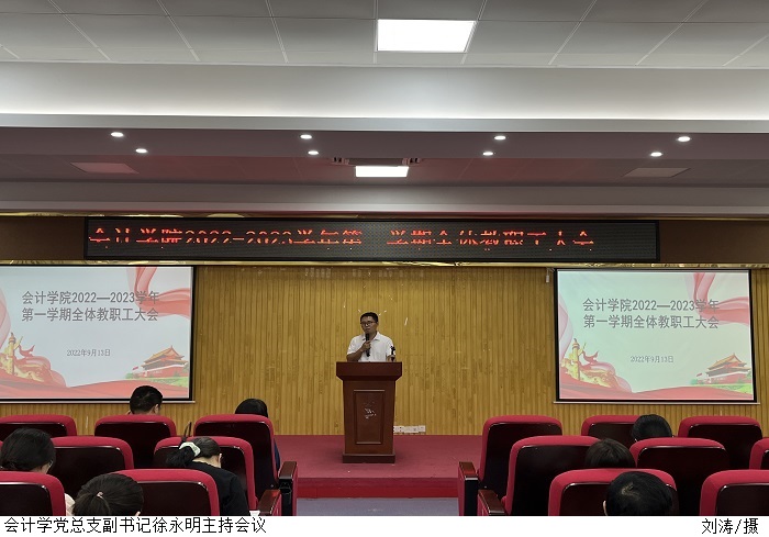 本网讯(太阳成集团tyc7111 黄琳琳)9月13日,太阳成集团tyc7111在高要校区42101召开以“迎接合格评估,树立师德师风”为主题的2022-2023学年第一学期全体教职工大会,院长盛洁、党总支书记黎伯毅、副院长赵燕、副院长郑春晓、党总支副书记徐永明和全院教职工参加会议。徐永明副书记主持会议。