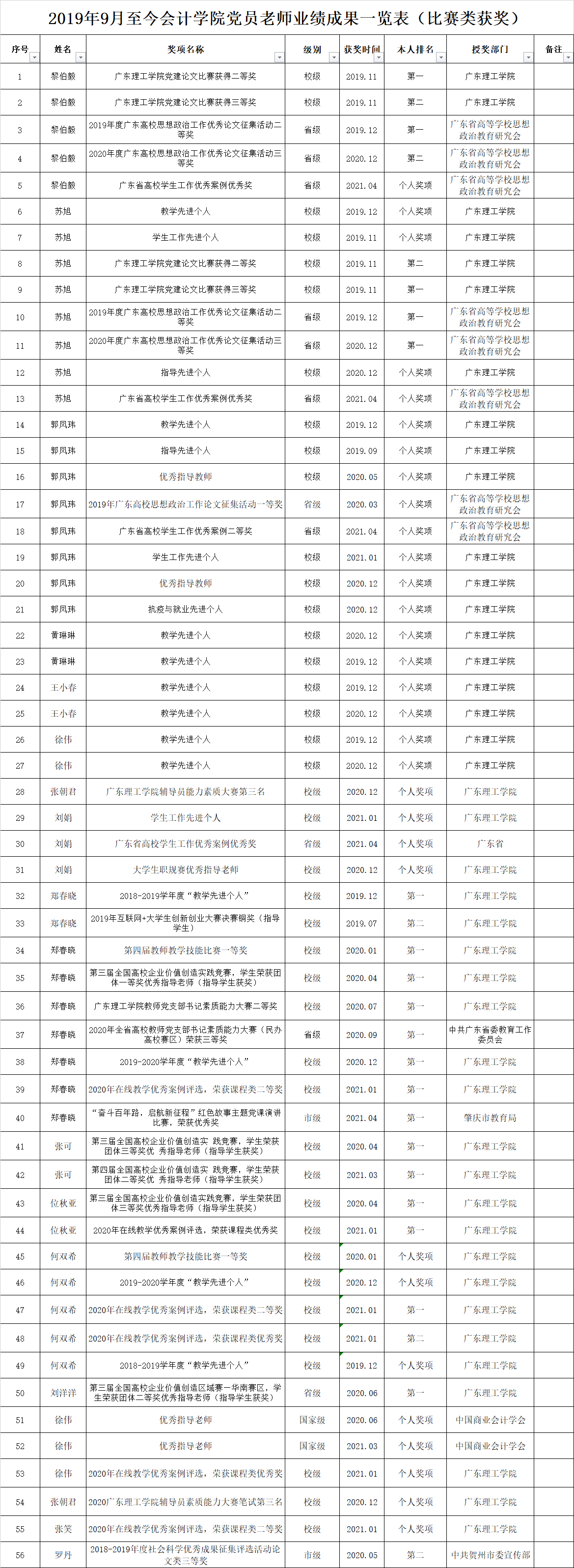 2019年9月至今太阳成集团tyc7111党员老师业绩成果一览表(比赛类获奖)