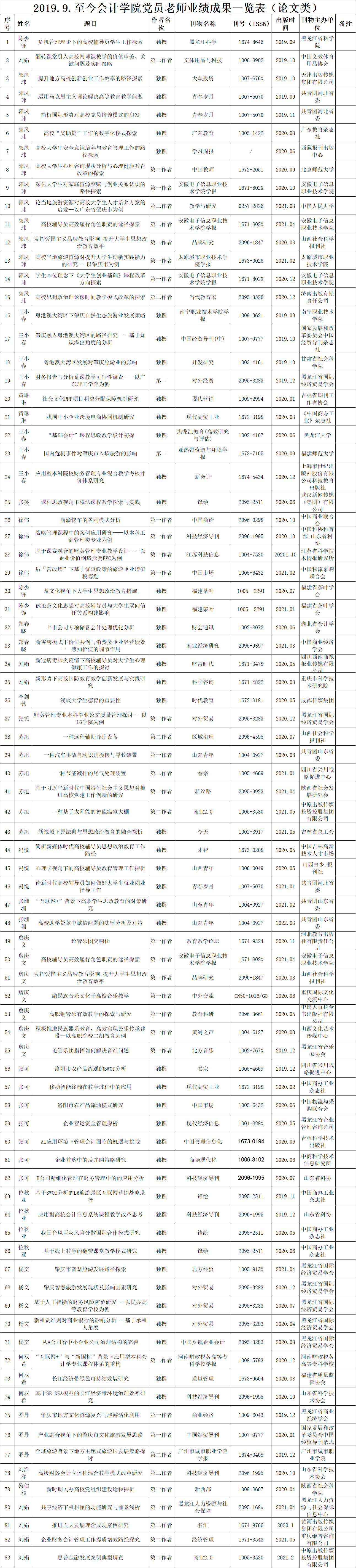2019.9.至今太阳成集团tyc7111党员老师业绩成果一览表(论文类)