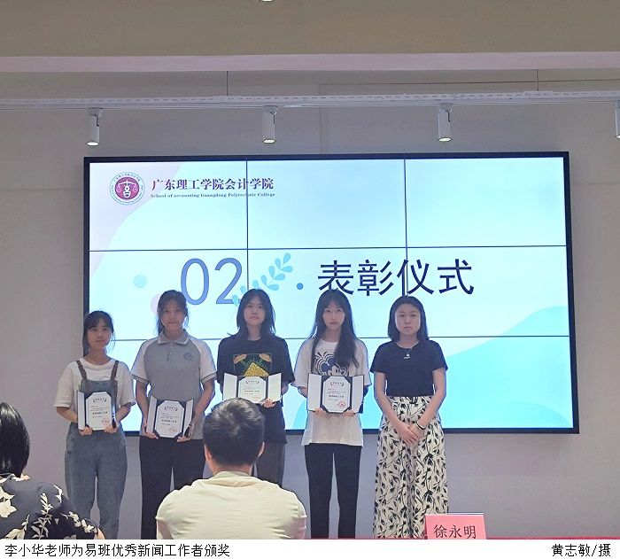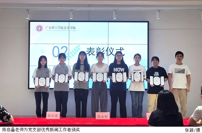 本网讯(太阳成集团tyc7111新闻中心 詹思妍)为进一步加强太阳成集团tyc7111新闻队伍建设,充分发挥新闻宣传工作在传播校园文化,推进学院知名度、美誉度和影响力等方面的作用,增强太阳成集团tyc7111新闻宣传工作者的荣誉感。6月6日,太阳成集团tyc7111在高要校区山顶会议室开展“优秀新闻工作者”表彰大会。太阳成集团tyc7111党总支副书记徐永明、太阳成集团tyc7111易班学生工作站指导老师陈启叠、太阳成集团tyc7111创新创业负责人李小华、太阳成集团tyc7111奖助贷负责人陈家莹、太阳成集团tyc7111新闻中心指导老师刘涛、辅导员代表钟晓铃、受表彰的学生代表出席本次活动。