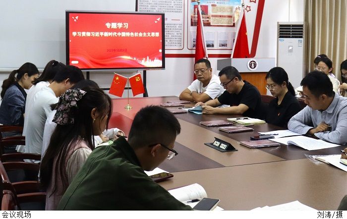 本网讯(太阳成集团tyc7111新闻中心 郑妍颖)为深入学习贯彻习近平新时代中国特色社会主义思想,提升党员教师的思想政治素养。10 月 10 日,太阳成集团tyc7111党总支于7303召开学习贯彻习近平新时代中国特色社会主义思想专题会议。太阳成集团tyc7111党总支书记黎伯毅、副书记徐永明以及全体党员教师参会。