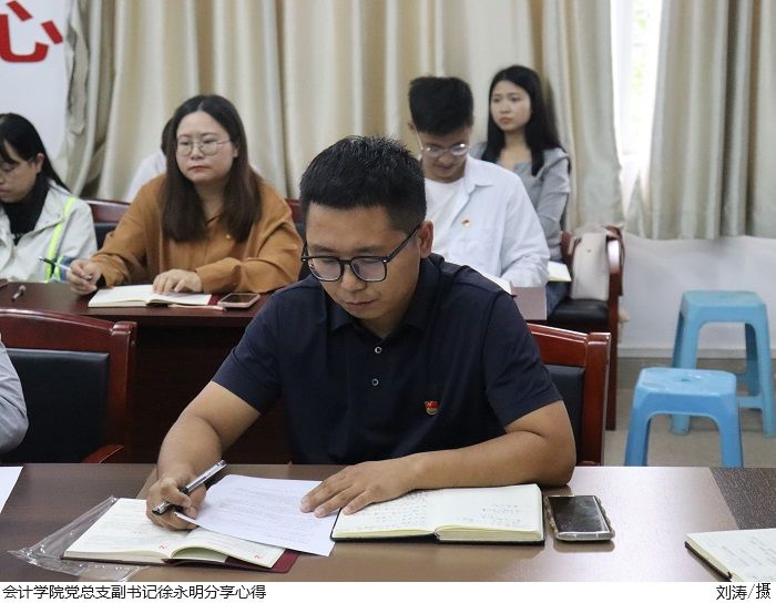 随后,徐永明结合了具体实例分享心得感悟。他表示,学习贯彻习近平新时代中国特色社会主义思想是新时代发展的要求。我们要时刻牢记立德树人的根本任务,努力做到主动带头“学”、融会贯通“悟”、知行合一“用”三个基本要求,以饱满的政治热情推进学院的思政教育工作中。