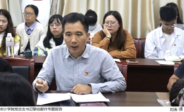 会议伊始,黎伯毅分别从科学体系、理论框架、核心要义以及重大创新四个方面对习近平新时代中国特色社会主义思想进行深入解读。他强调,作为新时代的党员教师,要深刻认识开展主题教育的重要意义,全面把握习近平新时代中国特色社会主义思想的世界观与方法论,增强理论学习厚度,提升课堂教学效度,扩大思政育人广度,争做奋进新征程的实干者、践行者。