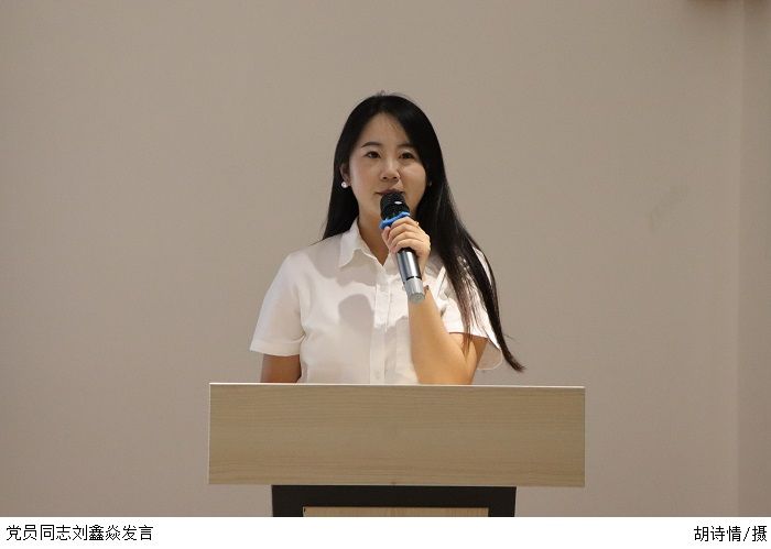 首先,党员同志刘鑫焱以提问的方式与新生们一起探讨“你入党的初心是什么”这一问题,进而引入本次讲座的主题 “顺时而进,做有为青年”,她认为要坚定有为青年之使命,不仅要有目标和梦想,还要培养积极的心态持续学习与成长。接着,她回顾了自身的入党历程,讲述自己的入党初心,引导新生树立正确的入党动机。最后,刘鑫焱同志提出“以人为本,有为青年推动社会进步”的观点,希望青年始终坚持“以人为本,共创和谐”这一理念,以实际行动为社会做出贡献。