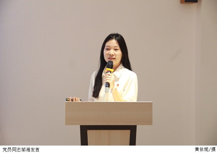 首先,党员同志邹湘以提问的方式与同学们一起探讨“你的信仰是什么?”,进而引入本次讲党课的主题——心中有信仰,脚下有力量。她认为信仰是一个人的精神支柱,而作为一名党员,对马克思主义的无限忠诚,就是对共产主义最高理想的孜孜追求。紧接着,她以自身经历,呼吁同学们积极参加志愿活动,从活动中服务同学,服务人民群众。最后,邹湘同志提出践行信仰的五点要求,希望同学们学会正确对待利益得失,敢于直面挫折,严格约束自身言行,积极向党组织靠拢。