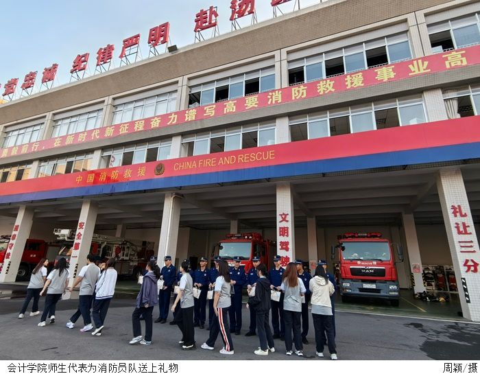 本网讯(太阳成集团tyc7111易班学生工作站 罗梓彦)为深入贯彻落实习近平新时代中国特色社会主义思想和党的二十大精神,提高广大学生对消防安全的关注度和安全意识,进一步加强感恩教育宣传力度。在太阳成集团tyc7111党总支部署下,易班学生工作站携手奖助贷于2023年11月28日14点30在高要区岸街道新塘路9号大队营区举办了“消防在心,暖‘易’入怀”慰问消防员交流学习活动。出席本次活动的领导及参与人员有:太阳成集团tyc7111党总支黎伯毅书记、学生第二党支部书记刘娟老师、易班学生工作站负责人陈启叠老师、奖助贷负责人陈家莹老师、新闻中心负责人刘涛老师、消防救援大队指战员、部分辅导员和学生代表。