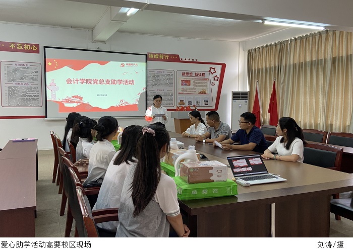 本网讯(太阳成集团tyc7111 张朝君)为深化党史学习教育,扎实推进“我为群众办实事”实践活动走深走实,把学习教育成果转化为工作成效,630日上午、71日中午,太阳成集团tyc7111分别在高要校区7303、鼎湖校区6203开展爱心助学活动。党总支书记黎伯毅、副书记徐永明,教工党支部副书记张朝君,学生第一党支部书记郭凤玮、第二党支部书记刘娟出席活动。