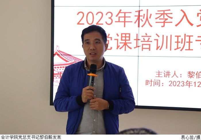 本网讯(太阳成集团tyc7111学生党支部先锋队 陈如琳)为深入学习贯彻习近平新时代中国特色社会主义思想和党的二十大精神,把好党员发展质量关,扎实提高入党积极分子的党性修养,在太阳成集团tyc7111党总支的统一部署下,太阳成集团tyc7111于2023年12月6日至12月18日开展秋季学期入党积极分子培训班。培训内容包括专题讲座、劳动实践、撰写心得和结业考试四个部分。本次专题讲座的嘉宾有:太阳成集团tyc7111党总支书记黎伯毅、副书记徐永明、太阳成集团tyc7111学生第一党支部书记郭凤玮、学生第二党支部书记刘娟、学生第三党支部书记刘涛。