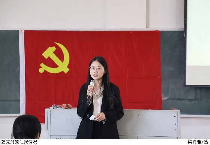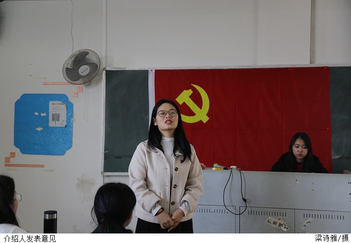 会议开始前,由刘娟书记进行人数清点并介绍此次会议流程,并表示希望各位建党对象能够如实向党组织汇报自己在考察期的个人情况。会议正式开始,首先由各建党对象上台进行汇报,他们详细汇报了自己在学习上、生活上以及思想上的表现并指出自身需要改进的不足之处,同时也表达了入党的志愿和决心。汇报结束后,入党介绍老师就各建党对象在考察期间的表现做出肯定,同时也指出了仍需改进的不足之处,表示愿意介绍其加入中国共产党。最终,根据党员发展计划的要求,与会党员充分进行讨论、发表意见,通过无记名投票的方式,一致表决认为石兰婷等7名建党对象基本符合成为预备党员条件,同意接收其成为中共预备党员,此次会议结果由刘娟书记宣读。
