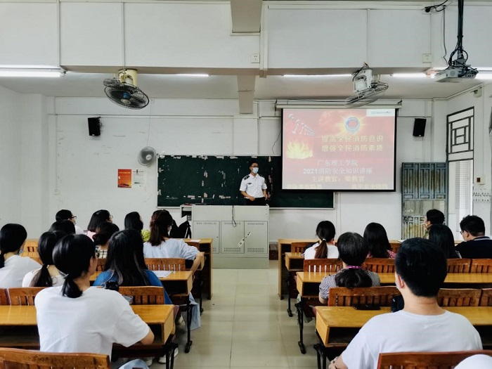 肇庆市消防宣传中心梁教官带领大家观看了消防公益视频,了解消防安全的知识并详细讲解了消防器材的使用方法以及初期灭火的步骤。灭火器是最基本和关键的消防灭火器材,梁教官上台演示了多种灭火器使用方法。他讲解道,使用灭火器灭火时尽量远离火源,灭火器应对准火焰的根部喷射。随后,梁教官通过分析近期火灾案例,向大家分析了造成火灾的多种原因、发生火灾时的自救与逃生方法及初期灭火的方法。他提到初期灭火的关键要点在于利用身边工具,因地取材,尽量阻断火灾的必要条件使火势减少。梁教官以案说教,图文并茂地为现场的师生开展了一场别具生面的消防学习会,参会师生认真学习并表示通过本次学习会不仅能深入了解消防安全知识,还收获了正确使用灭火器的技能。