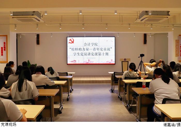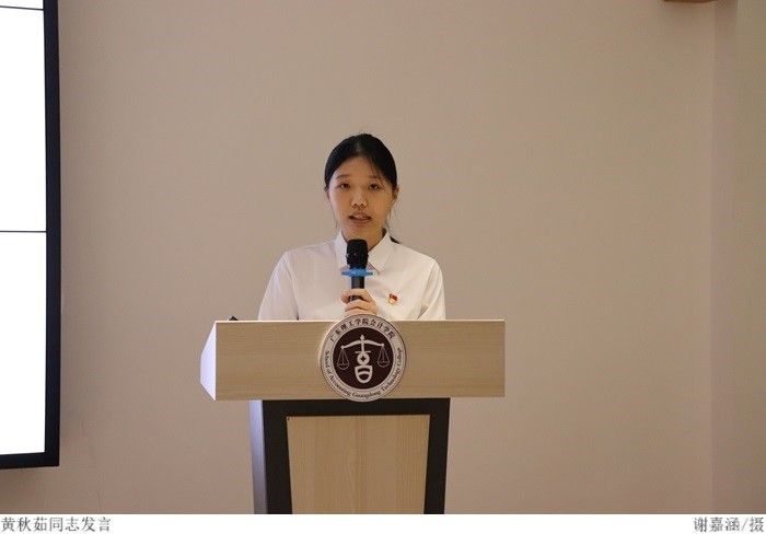党课共有两部分。第一部分为黄秋茹同志以“重读红色家书,感悟抗战精神”为主题,通过重读赵一曼、左权和谢晋元等抗战英雄的家书,追思先辈事迹,感悟革命精神,号召同学们要关注国家时事政治,树立崇高理想,以百折不挠、坚忍不拔的必胜信念砥砺前行。第二部分为黄雨桃同志以“敢担当有作为”为切入点,突出敢于担当是中国共产党人鲜明的政治品格。她表示各位党员同志要发挥表率作用,坚持把思想教育摆在首位,以高度的政治责任感和历史使命感担当作为,真正做到愿担当、敢担当、善担当。