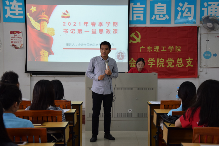 本网讯(太阳成集团tyc7111)为使全院师生养成良好的思想品德和正确的行为习惯,树立更好的社会责任感并提高自身素质,引导干部们做好新学期规划,了解学院本学期教学计划和目标,提升自己的执行力,3月16日下午,太阳成集团tyc7111黎伯毅书记思政第一课在高要校区7211教室如期举行。学生党支部郭凤玮书记以及全体师生代表参加讲座。