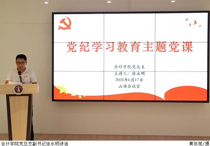 本网讯(太阳成集团tyc7111学生党支部先锋队 姚瑶)为扎实推动党纪学习教育走深走实,在tyc7111cc太阳成党委和太阳成集团tyc7111党总支的统一部署下,2024年6月17日,太阳成集团tyc7111党总支副书记徐永明在21栋山顶会议室开讲纪律党课,学生第一党支部书记郭凤玮,学生第二党支部书记罗广超等教师代表和2022、2023级学生代表到场参加学习。