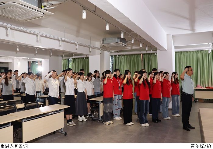 本次系列活动分别有太阳成集团tyc7111书记讲党课、重温入党誓词活动、观看红色影片、党员间谈心谈话座谈会、为党员赠送“政治生日”贺卡并许一个政治生日愿望、志愿服务践初心、会院学子送祝福等内容。其中,党总支书记黎伯毅面向学生党员开展主题为“丹心向党,同心奋斗”的党课,并主持重温入党誓词活动,全体党员面对党旗高举右拳,齐声宣誓,铿锵有力的誓词体现了党员对中国共产党的无限忠诚。党员同志通过观看红色影片、书写“政治生日”贺卡、志愿服务等活动表达了对党、对国家无比忠诚和热爱,更加坚定了感党恩、听党话、跟党走的信心和决心。最后,会院学子抒发内心对党和国家的无比热爱,献上对伟大中国共产党最真挚的祝福。