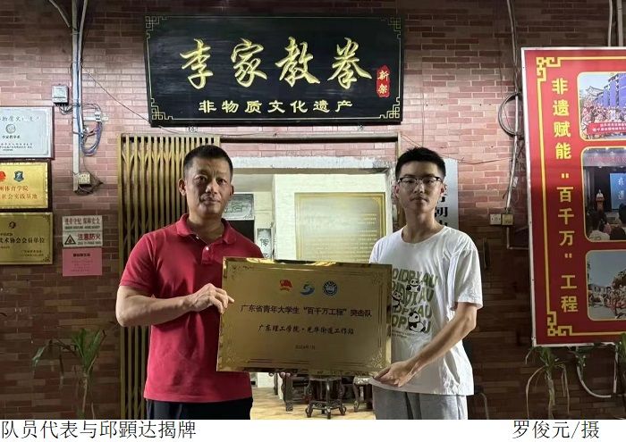 随着此次活动进入尾声,“拳心传承”突击队员在老师的引领下,与居委会成员们共同召开了一次深入的总结会议。居委会领导对突击队的非遗宣传工作,养老院敬老活动、社区打扫活动均赞誉有加,还强调了优化“百千万工程”活动、加强非遗保护之策。沙旭老师精炼总结了活动成果,客观的指出在探索非遗文化的过程中亮点与待改进之处,并对居委会的鼎力支持表达诚挚谢意。最后在“拳心传承”突击队员代表与工作站成员的共同见证下,队员代表与非遗传人邱顕达共同揭开了工作站牌匾的帷幕,象征着新的合作阶段正式开始。
