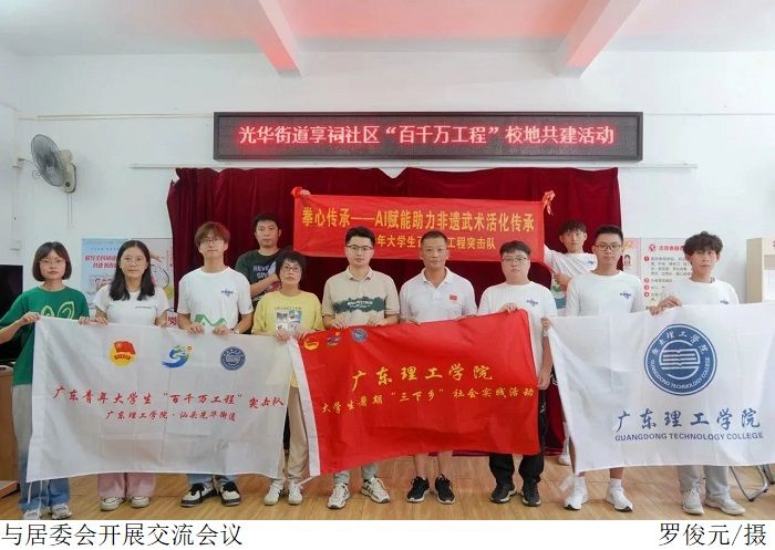 突击团队到达广东省汕头市金平区存心武馆进行社区踩点考察。光华街道团工委、存心武馆学校、享祠社区、“拳心传承”突击队共同召开了一次交流会议。在会议中,各组织成员进行充分交流,为后续四方合作达成坚实基础,促进“百千万工程”校地共建项目的有效进行。