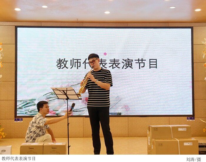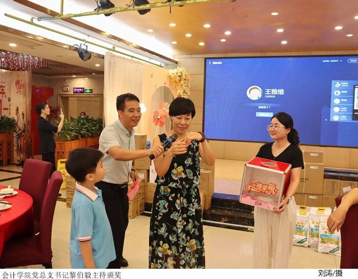 此外,学院还特别设置表彰颁奖环节,对过去一年中在教学、科研等方面表现突出的教师进行表彰并颁发荣誉证书和奖品。紧接着,由黎伯毅书记主持抽奖环节,抽奖活动和教师代表平涛准备的节目让现场气氛热烈。