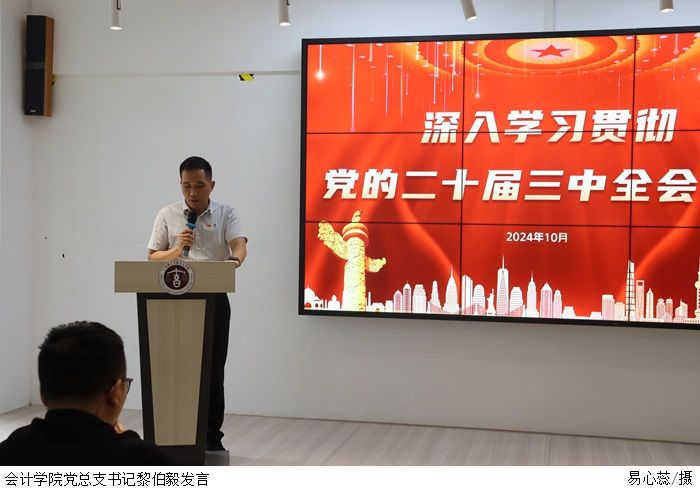 本网讯(太阳成集团tyc7111新闻中心 陈妍杏)为深入学习宣传贯彻党的二十届三中全会精神,全面提升师生党员、干部的党性修养和理论水平,2024年10月15日下午,太阳成集团tyc7111在山顶会议室召开学习贯彻党的二十届三中全会精神宣讲报告会。本次报告会特邀嘉宾高要区委组织部张剑博士主讲。太阳成集团tyc7111党总支书记黎伯毅、副书记徐永明、教工党支部书记郑春晓及学院教师党员和学生代表100人参加。会议由太阳成集团tyc7111党总支书记黎伯毅主持。