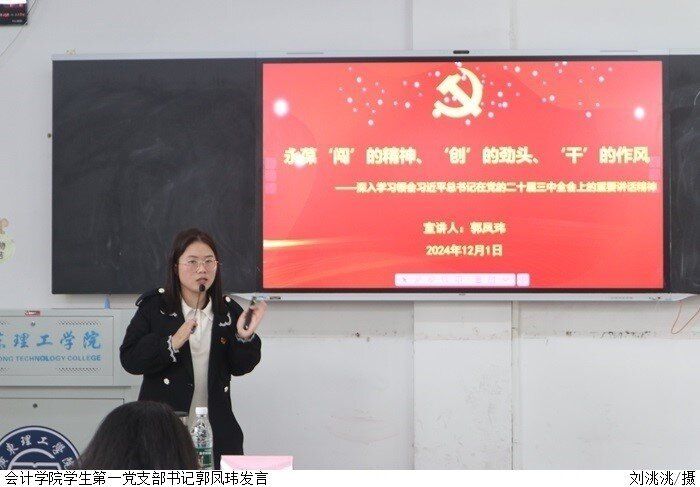 专题讲座中,黎伯毅书记以“初心不改,奋勇向前”为主题着重强调了入党的初衷和意义,表示我们要勇于担当起为人民服务的伟大使命,将个人理想与国家发展紧密结合,坚定理想信念,不忘初心,为国家发展贡献青春力量。徐永明副书记以“求真务实,开拓创新,推进我院党建工作规范化建设”为主题,希望入党积极分子深化学习党的理论知识,以实际行动为党的事业增光添彩。郭凤玮老师围绕发展党员的手续和程序展开讲解,希望同学们牢记党史,找准自身定位,为成为一名合格党员奠定坚实基础。罗广超老师从精神引领和行为示范两个方面讲解校风传承的重要性,希望同学们自觉遵守党规党纪,在日常生活中以党员标准严格要求自己。刘涛老师从中国共产党的历史、对党的认识以及党员的权利和义务等方面强调同学们要端正入党动机,认真学习党的政策和方针,为党的发展事业奉献青春力量。本次党课培训专题讲座结束后,同学们陆续完成了主题观影和线下结业考试等培训项目。