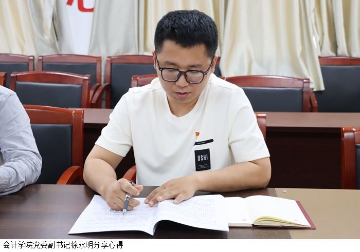 随后,徐永明分享学习心得,他讲到全院党员师生要提升认识、坚定站位,明确深入贯彻中央八项规定精神学习教育的重大意义。郑春晓在分享中提到,深入贯彻中央八项规定精神学习教育,是拥护“两个确立”的忠诚考验,是巩固党的执政根基的必然要求,是推进中国式现代化的有力保障。要把开展学习教育同落实党中央重大决策部署、有效推动学院中心工作发展紧密结合起来,确保学习教育取得实实在在的成效。