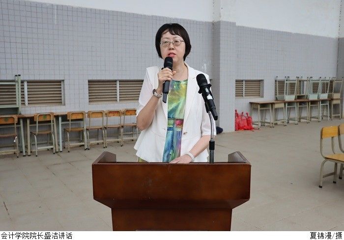 接着,盛洁讲话,她以在数字时代,国际劳动力市场变革深刻,大学生核心竞争力需重构为主题。对我们提出以下要求:一是提升认知能力,通过问题找到缺点;二是增强人工智能协作能力,掌握AI工具,提高工作效率;三是突破认知边界,借学科交叉融合形成复合知识结构。最后她寄语学生心怀家国,脚踏实地,提升能力,报效祖国。