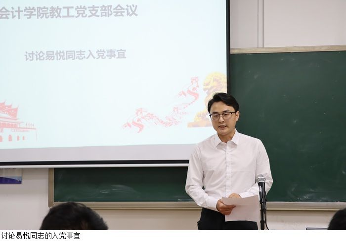 会议还讨论了李向南同志的转正事宜和易悦同志的入党事宜。李向南同志向党组织汇报了自己在预备期内的思想、学习、工作等情况,表达了希望转为正式党员的强烈愿望。经过审议,与会党员一致同意李向南同志转为正式党员。易悦同志心系学生工作,深得学生好评,经过审议,与会党员一致同意易悦同志入党。