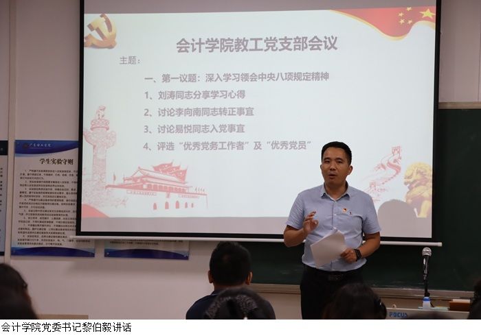 最后,黎伯毅作总结讲话,他强调,全体教职工党员要继续深入学习贯彻中央八项规定精神,不断提高政治站位,强化责任担当,以实际行动践行党的宗旨,为学校和学院的发展贡献力量。此次会议进一步增强了教工党支部的凝聚力和战斗力,为推动学院各项工作高质量发展奠定了坚实基础。
