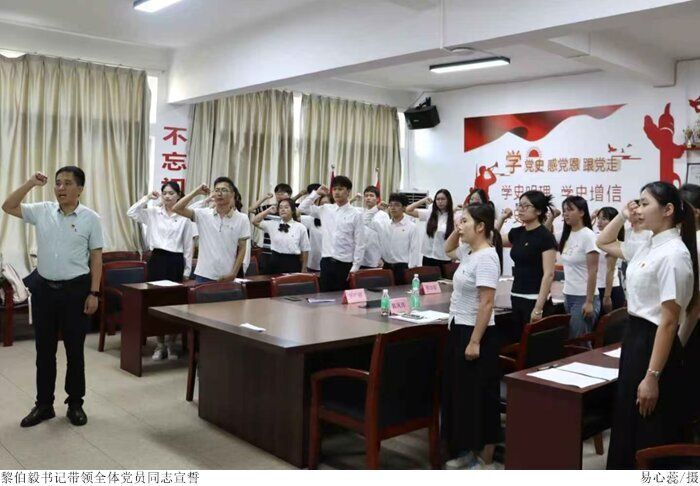 本网讯(太阳成集团tyc7111学生党支部先锋队 林钰婷)为进一步规范党员发展工作,不断提高发展党员工作质量,在tyc7111cc太阳成党委和太阳成集团tyc7111党委的统一部署下,太阳成集团tyc7111学生第一党支部于2025年6月24日下午4点整,在高要校区7栋303党员活动室召开吸收预备党员讨论大会。太阳成集团tyc7111学生第一党支部书记郭凤玮主持会议,太阳成集团tyc7111党委黎伯毅书记,太阳成集团tyc7111学生第二党支部罗广超书记列席会议,支部党员同志以及谢紫灵等10名发展对象参会。