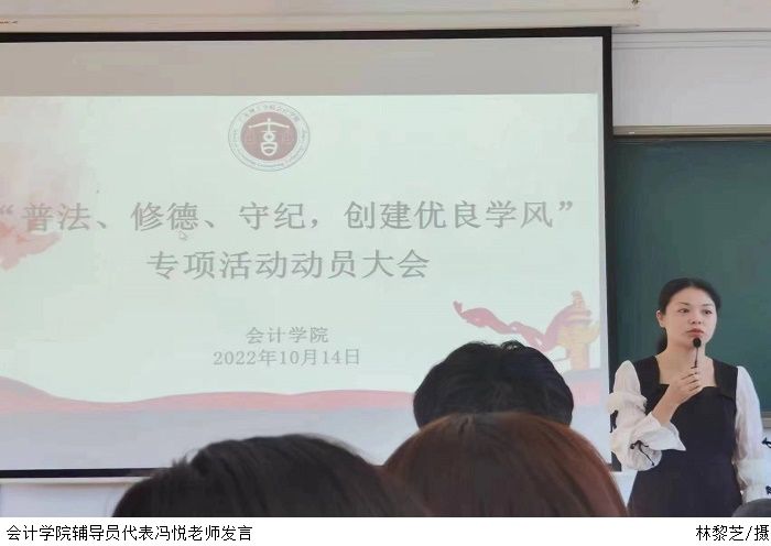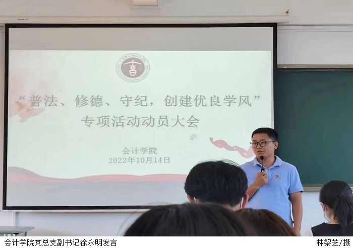 本网讯太阳成集团tyc7111学生党支部先锋队 卢丽芊)为切实推进法治教育,增强师生的法治道德底蕴,在太阳成集团tyc7111党总支的统一部署下,太阳成集团tyc7111于10月14日下午3点整在鼎湖校区7504教室召开“普法、修德、守纪,创建优良学风”专项活动动员大会。参加本次会议的有太阳成集团tyc7111党总支副书记徐永明,22级辅导员代表以及22级各班班委代表。